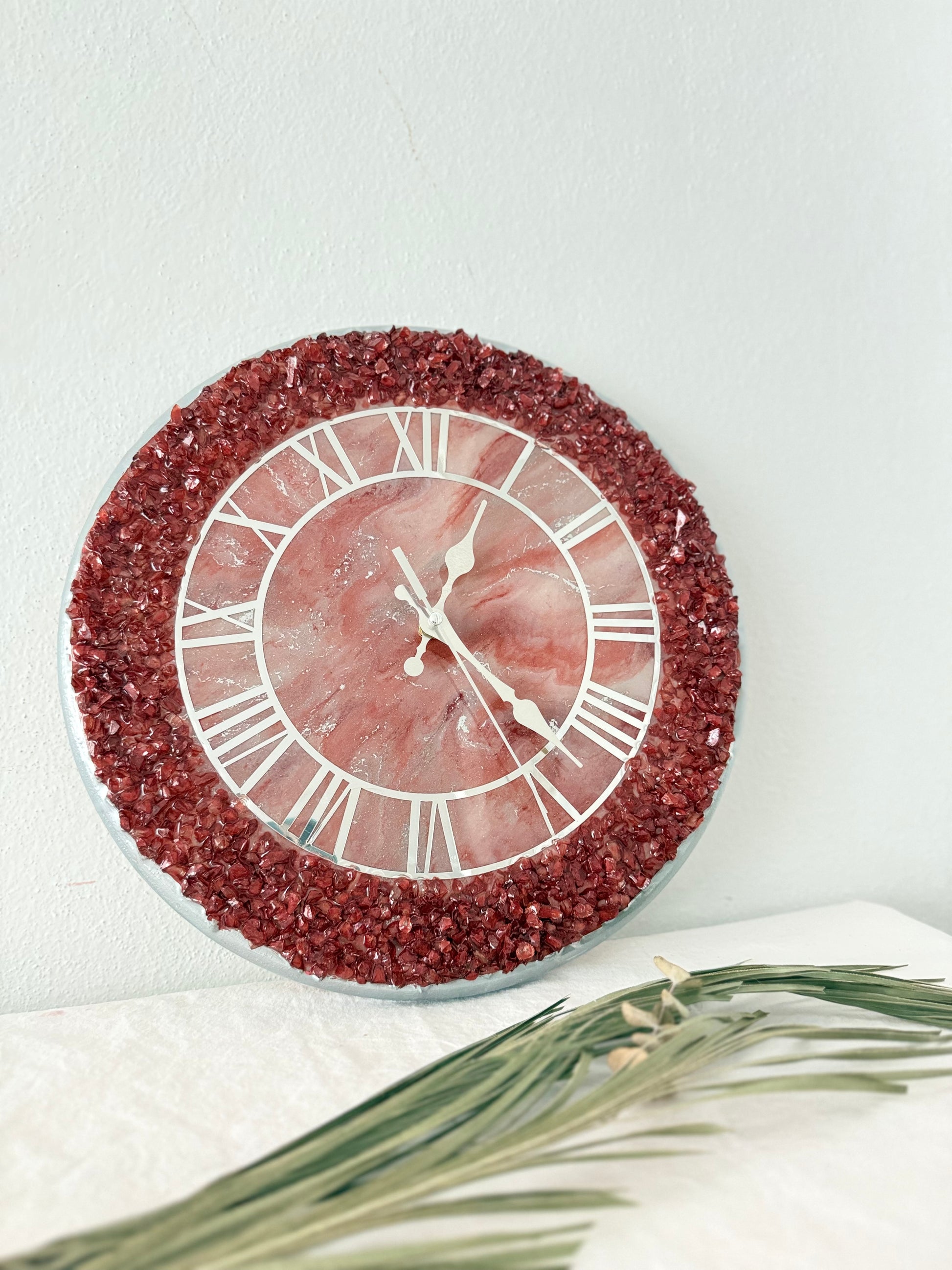 33 × 33 mdf üzerine yapılmış ak renginde tasarlanmış yuvarlak epoksi reçine ile yapılmış duvar saati. salonumuza renk katacak özel tasarlanmış size özel hissettirecek duvar saati