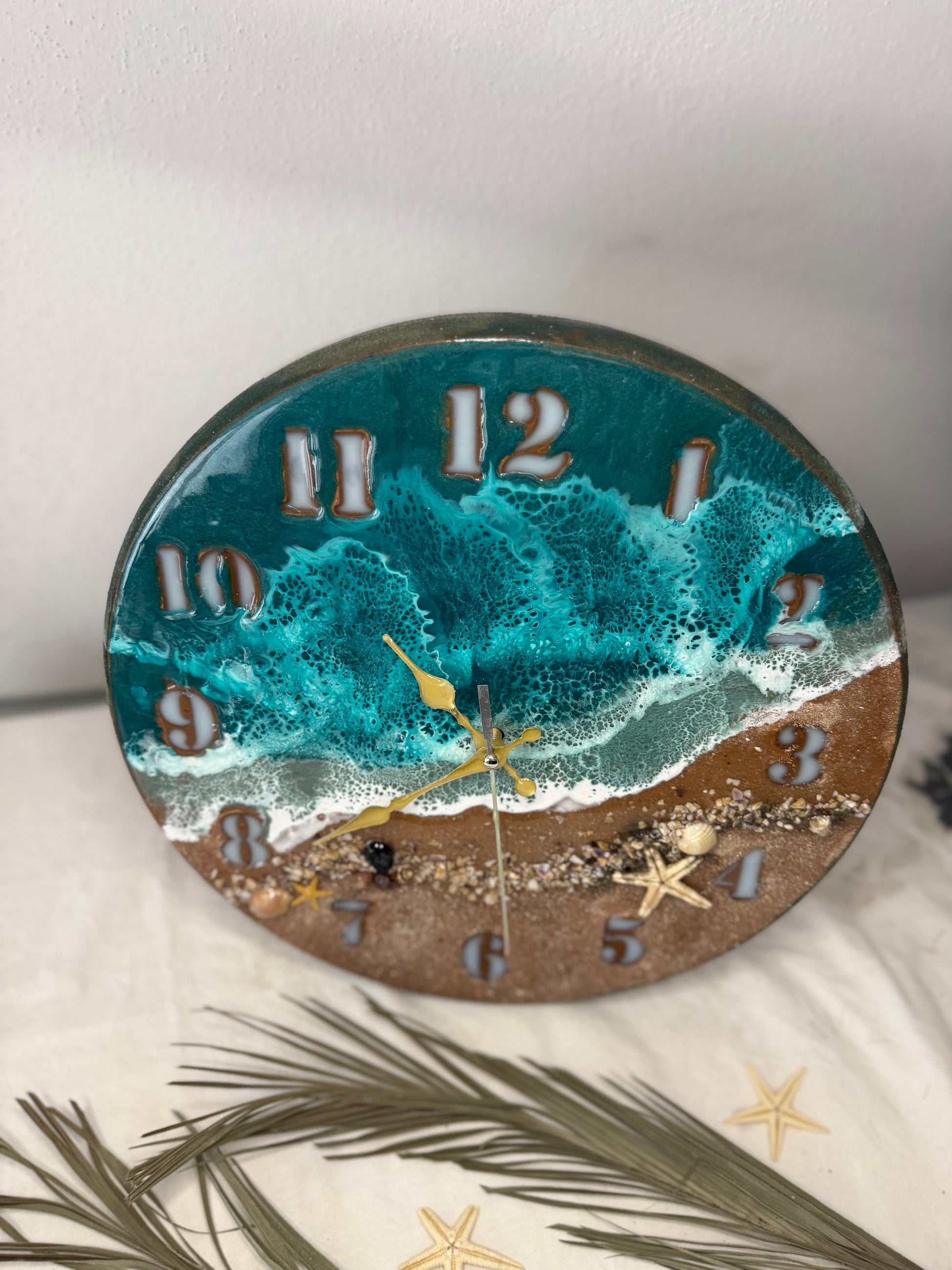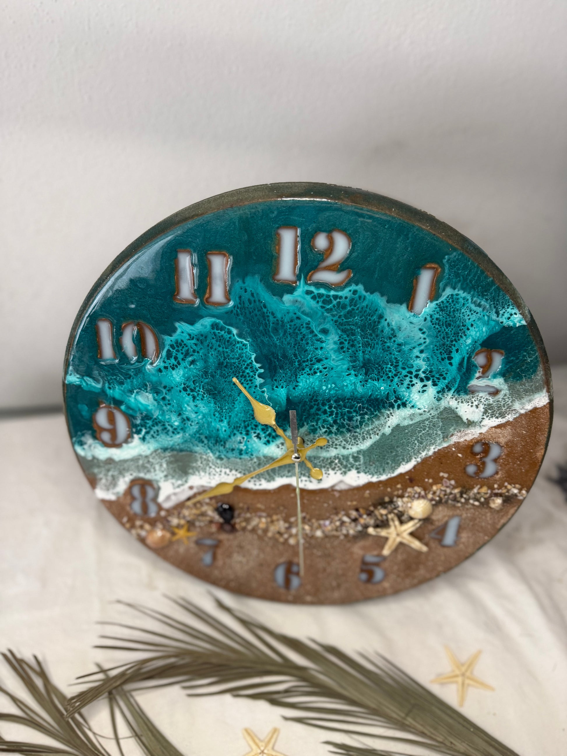 33 santim 33santim olup karanlıkta parlayan epoksi deniz efekti ile beraber üç boyut deniz tasarlanmış olup rahatlıkla saati görebileceğiniz akrep yelkovan da da özellikle fosforlu boya kullanılmış olup akrep bir yelkovan sessiz akar olup kaliteli malzemeler kullanmış olup mdf üzerine yapılan epoksi ile birleştirilmiştir.