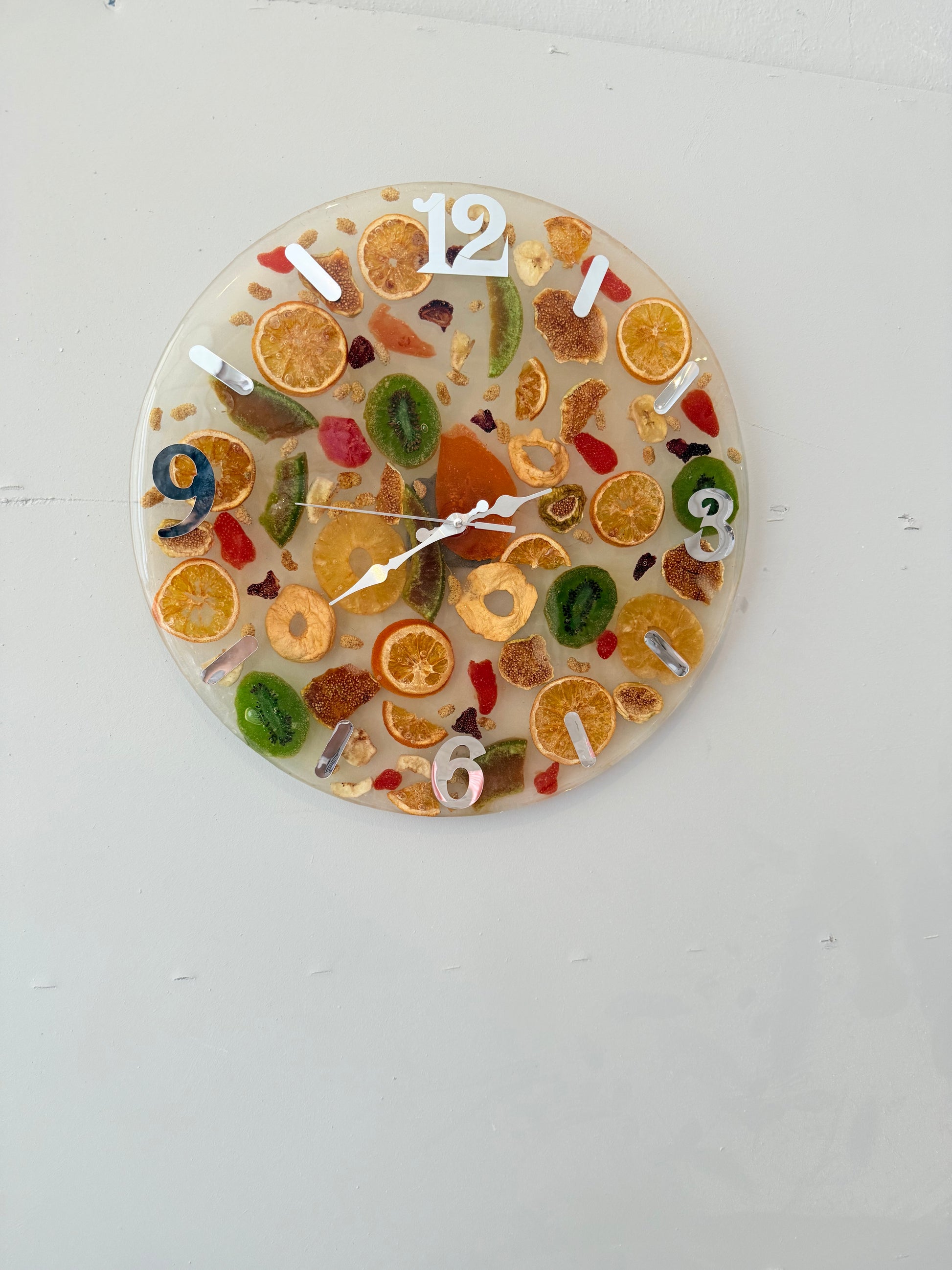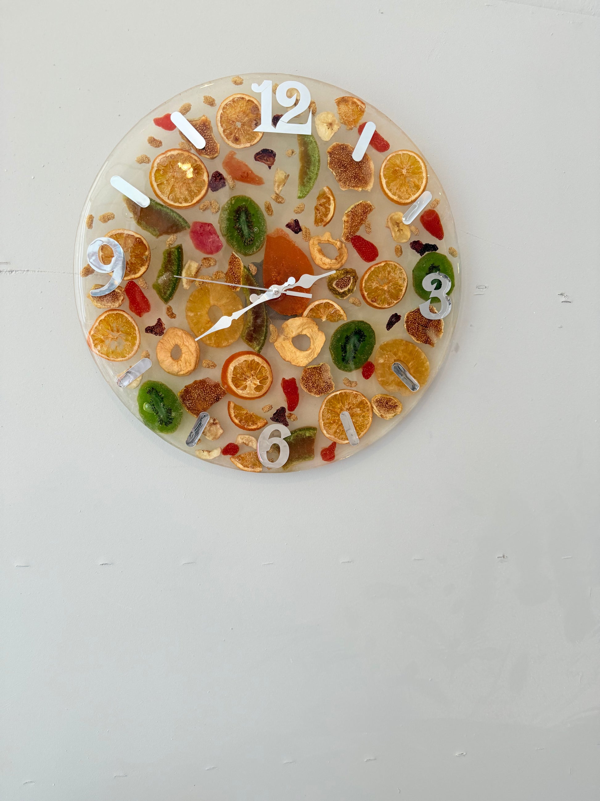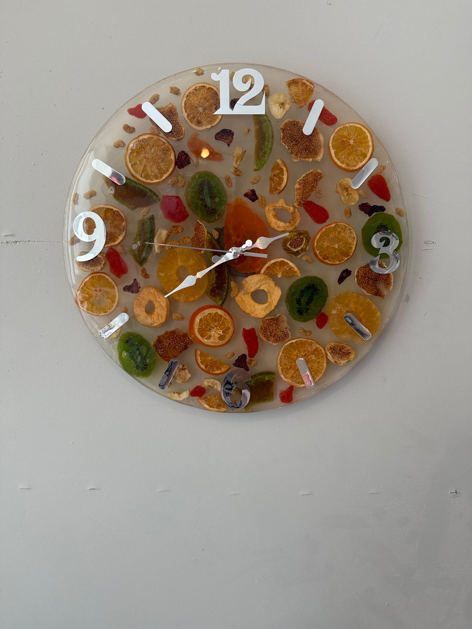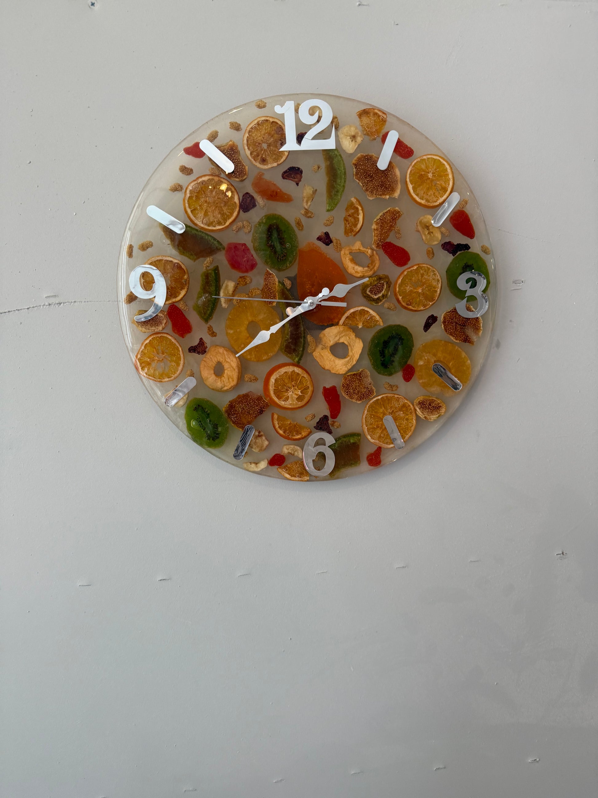40 santime 40 santim özel kurutulmuş tropik meyvelerden yapılmış rengarenk mutfağımız için özel tasarım saat